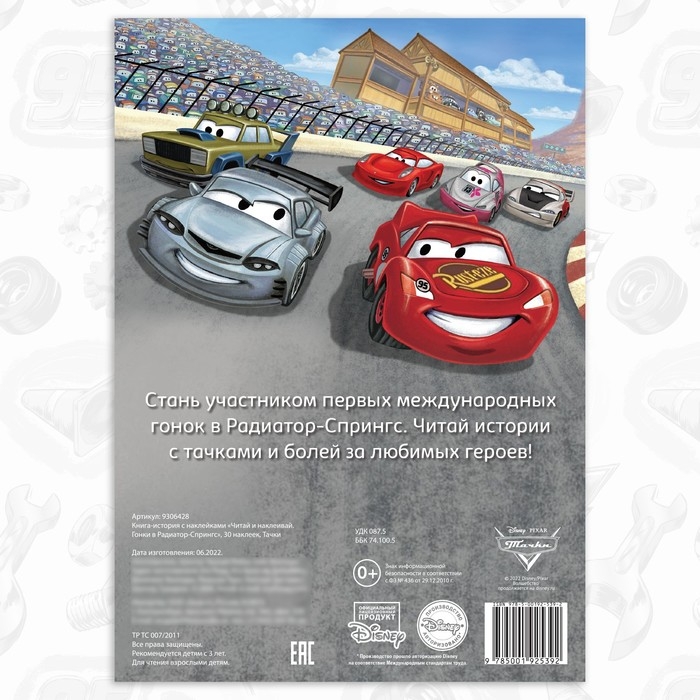Книга-история с наклейками «Читай и наклеивай. Гонки в Радиатор-Спрингс», 30 наклеек, 17 × 24 см, 16 стр., Тачки