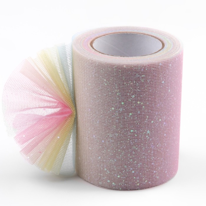Фатин с глиттером «Радуга», 7,5 см, 11 ± 1 г/кв.м, 9 ± 0,5 м, цвет розовый №1