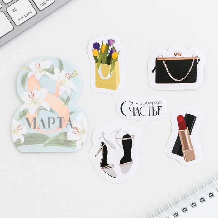 Набор: бумажные стикеры 20 л + 5 наклеек «8 марта лилии»