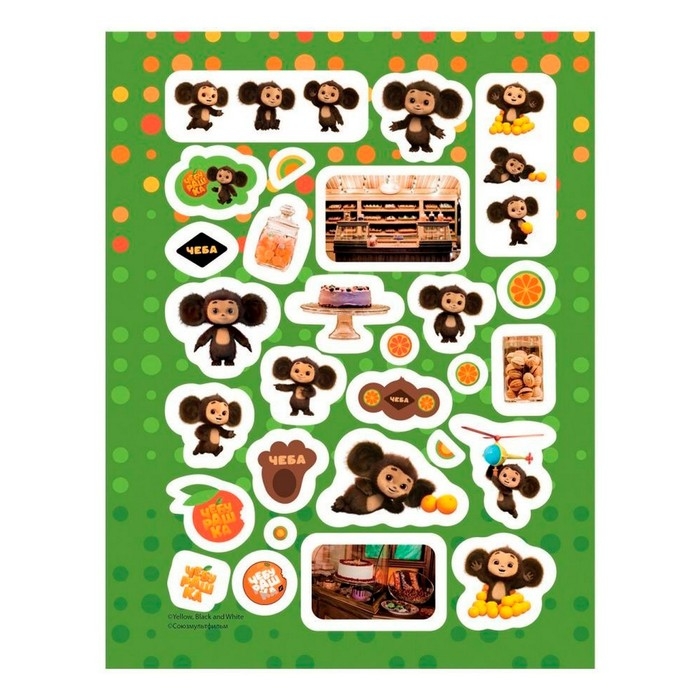 - В книге «Чебурашка» вы найдете 150 наклеек с милым персонажем всеми любимого фильма и декоративными элементами, из которых можно создать оригинальный орнамент.