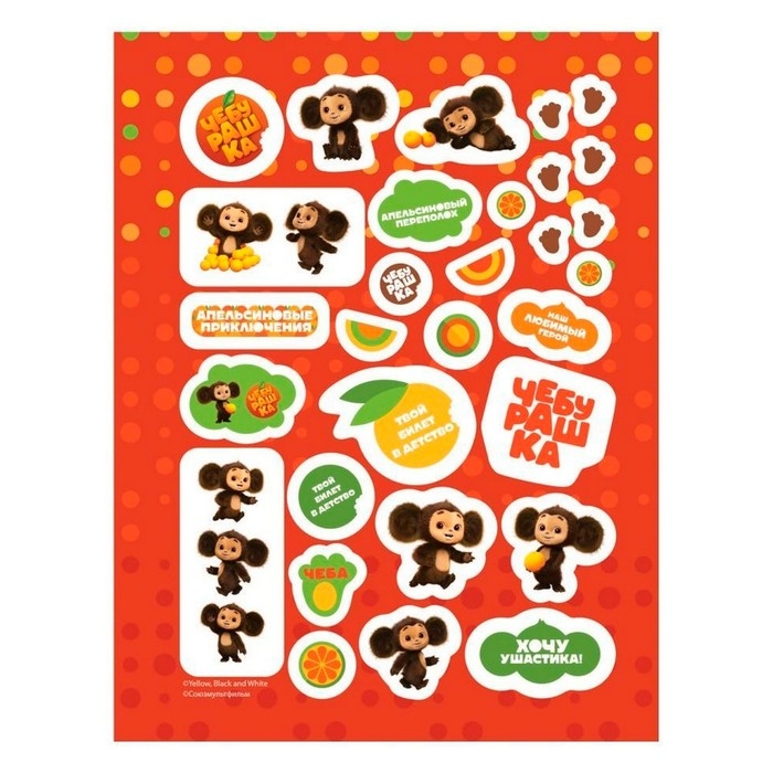 Наклейки «Чебурашка. Апельсиновый переполох» — это яркие красочные наклейки с популярным детским мультфильмом.