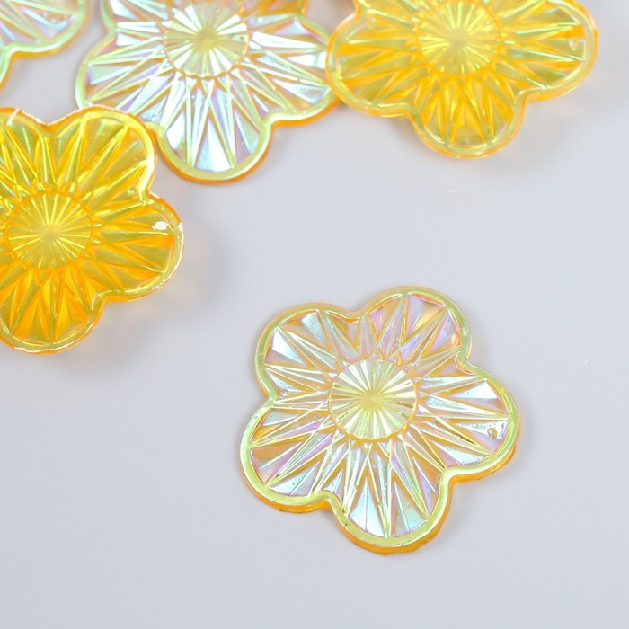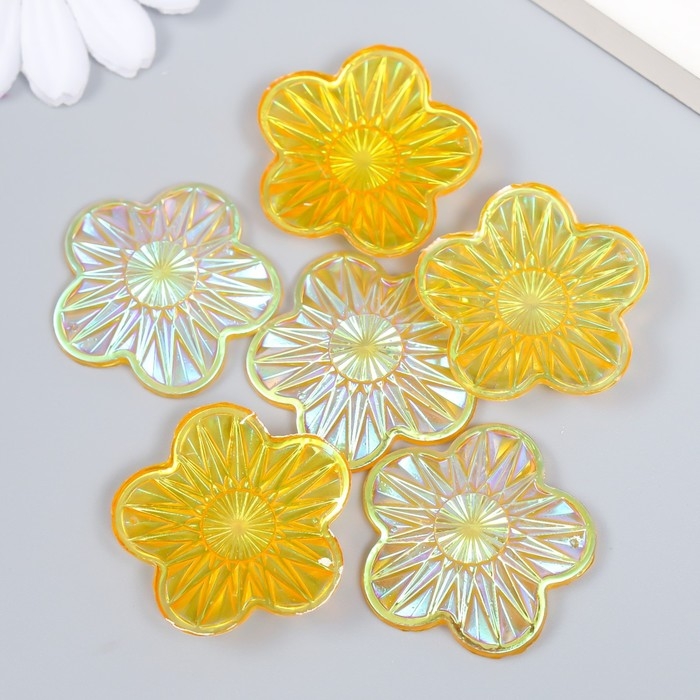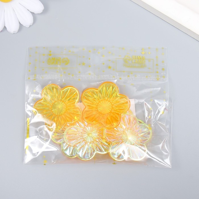 Декор для творчества пластик "Цветок" голография оранж набор 6 шт 3,5х3,5 см