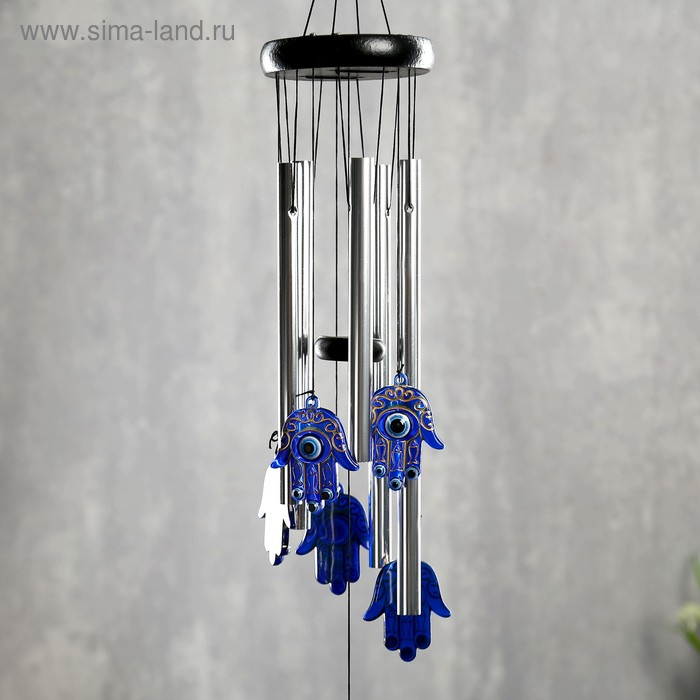 Музыка ветра металл, пластик "Ладонь с талисманом" 5 трубок 6 рук 50х8,5х8,5 см