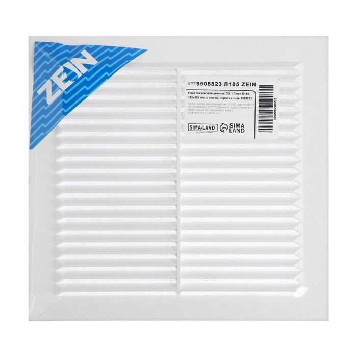 Решетка вентиляционная ZEIN Люкс Л185, 185 х 185 мм, с сеткой, неразъемная