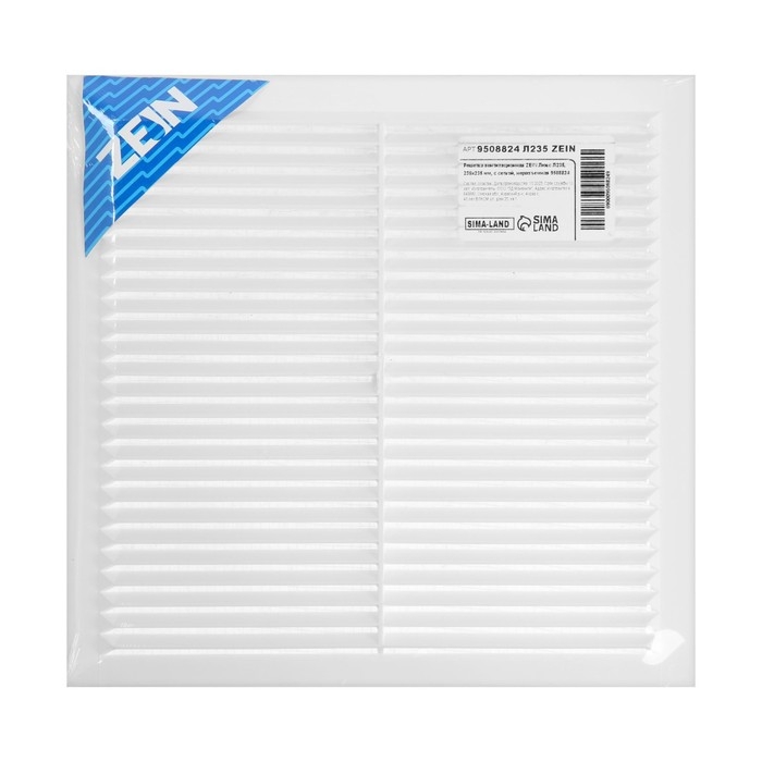 Решетка вентиляционная ZEIN Люкс Л235, 235 х 235 мм, с сеткой, неразъемная