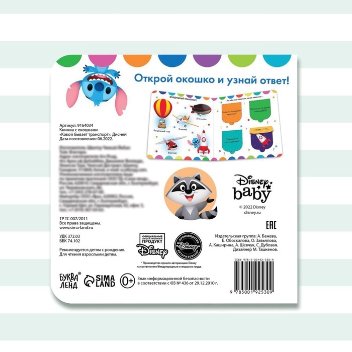 Картонная книга с окошками «Какой бывает транспорт», 10 стр., 16 окошек, Дисней