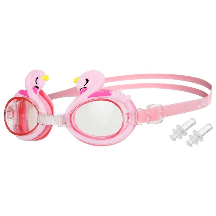 Очки для плавания детские ONLYTOP, беруши, цвет розовый