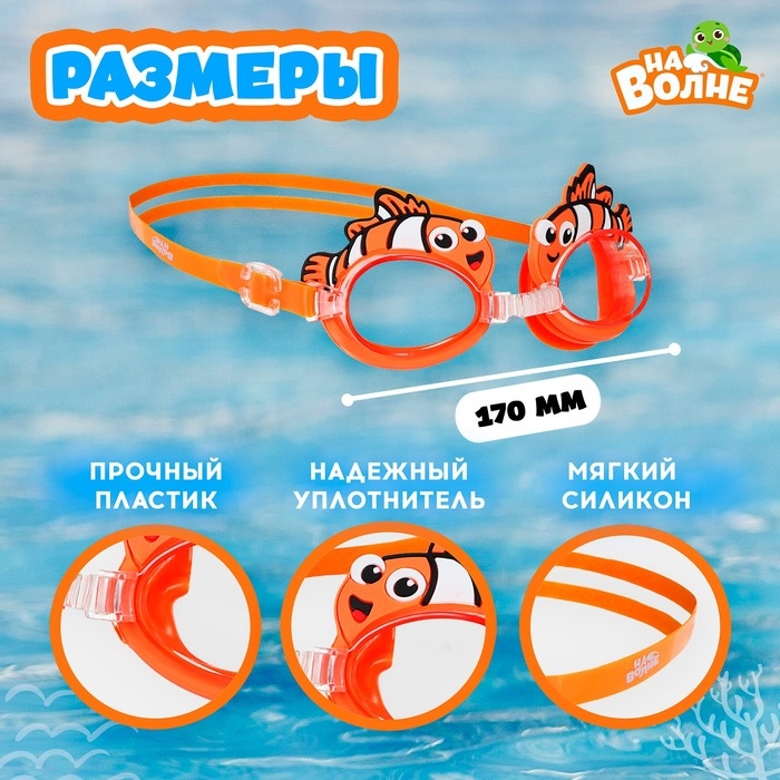 Очки для плавания детские «На волне» «Рыбка», беруши