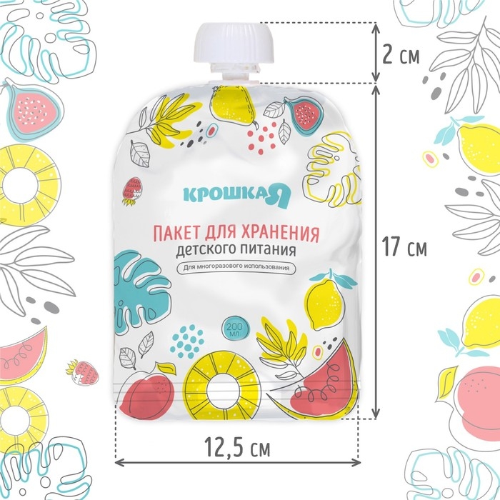 Многоразовые пауч пакеты для детского питания, 200 мл, набор 3 шт., Крошка Я
