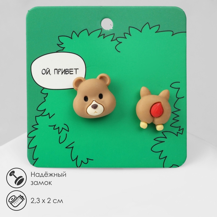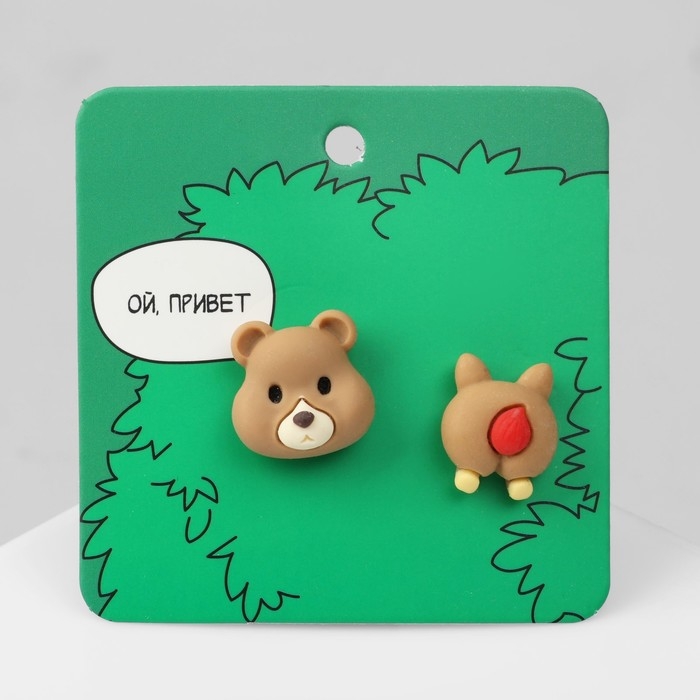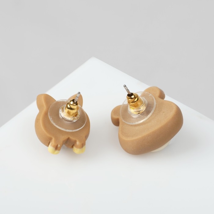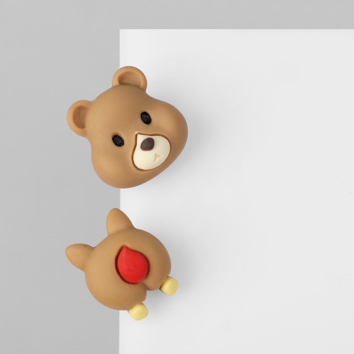 Серьги пластик «Мишка» хвост-сердечко, цветные в серебре