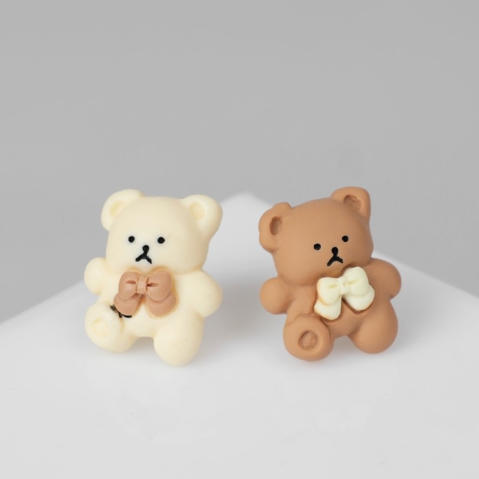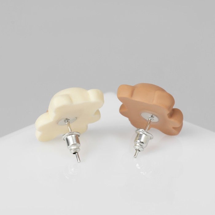 Серьги пластик «Мишка» с бантиком, цвет бело-коричневый в серебре