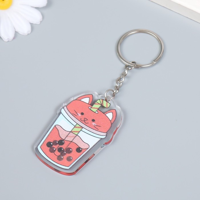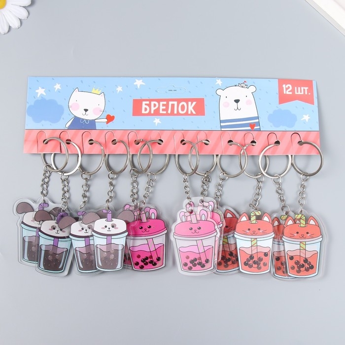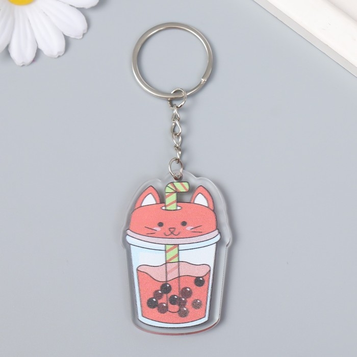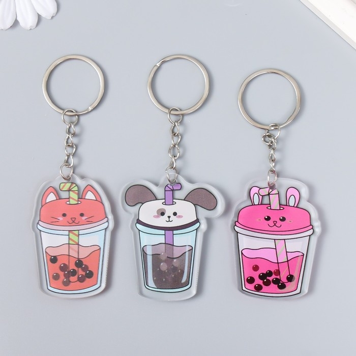Брелок акрил "Чайный напиток с шариками" МИКС 5х5,7 см