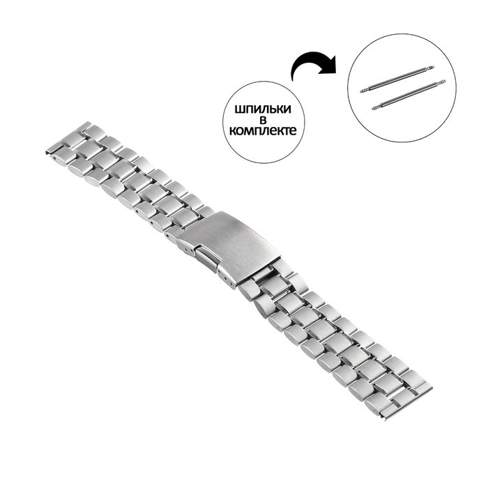Ремешок для часов, 24 мм, l-17.3 см , шпиньки в комплекте, серебристый