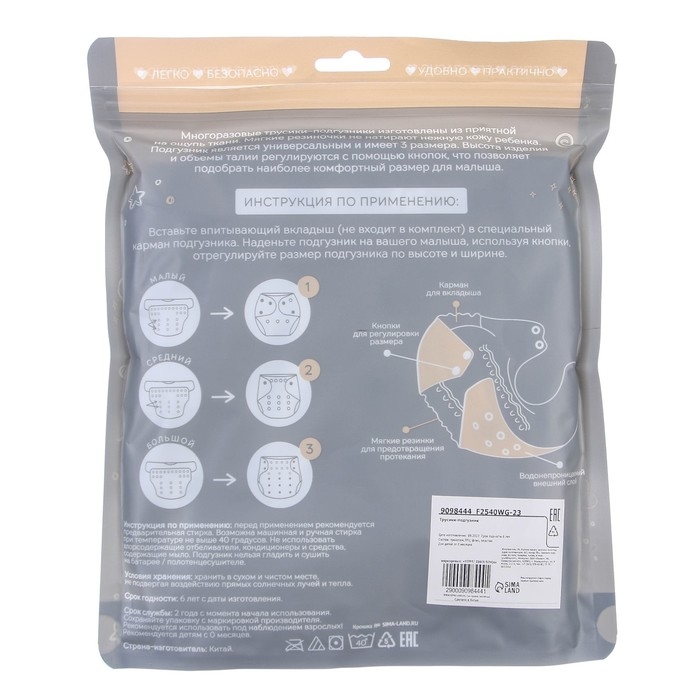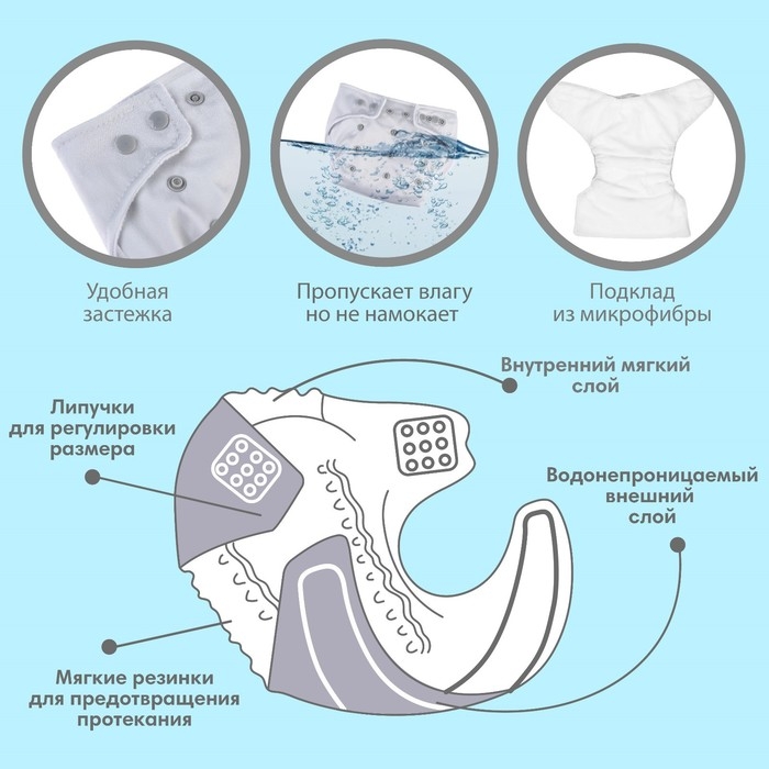 • Подгузник имеет удобный кармашек для вкладыша;