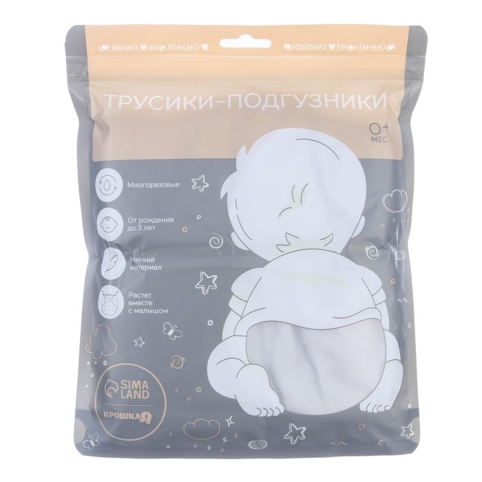 Многоразовый подгузник «Звезды», 3-15 кг, цвет белый, Крошка Я