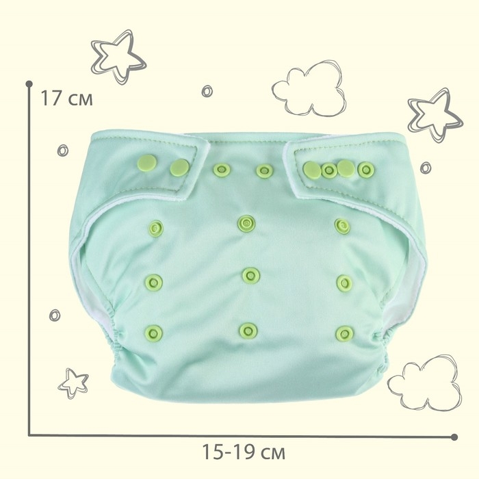 Многоразовый подгузник, 3-15 кг, флис, цвет светло зеленый, Крошка Я