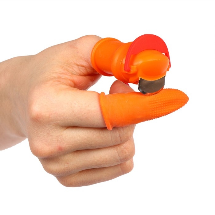 Напальчник с лезвием + 1 напальчник с металлической оплёткой, для сбора урожая, Greengo