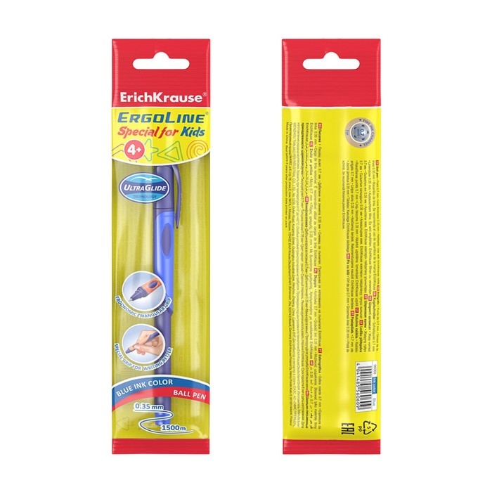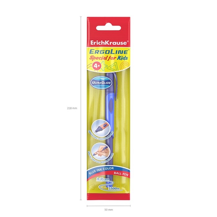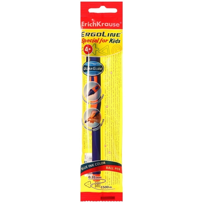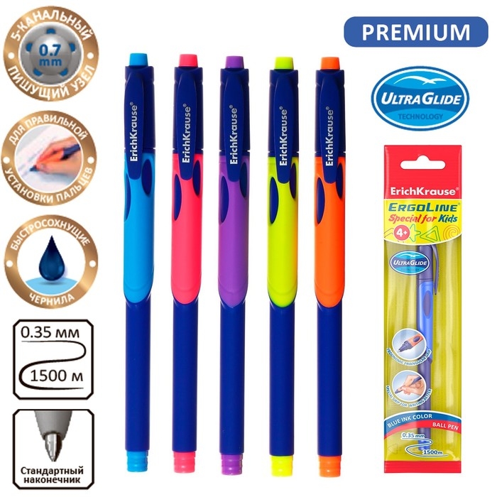 Ручка шариковая ErichKrause ErgoLine Kids, первоклассника, эргономичный держатель, корпус Soft-touch, узел 0.7 мм, чернила синие, микс, блистер