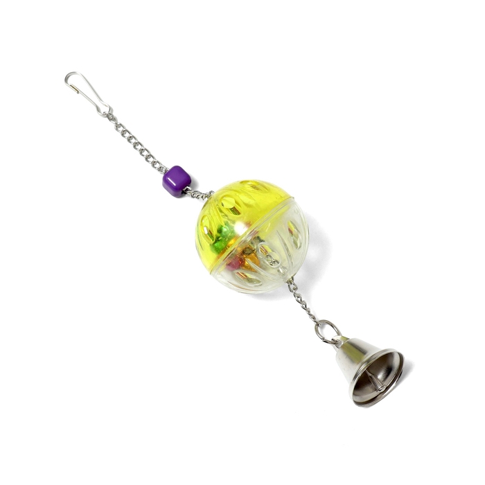Игрушка для птиц "Шарик на цепочке с колокольчиком" - это веселая и звучная развлекательная игрушка для вашего пернатого друга. Этот яркий шарик, прикрепленный к цепочке с колокольчиком, предоставляет вашей птице возможность игры, кручения и создания мелодичных звуков. Эта игрушка стимулирует активность вашей птицы и делает ее дни в клетке более интересными и веселыми.