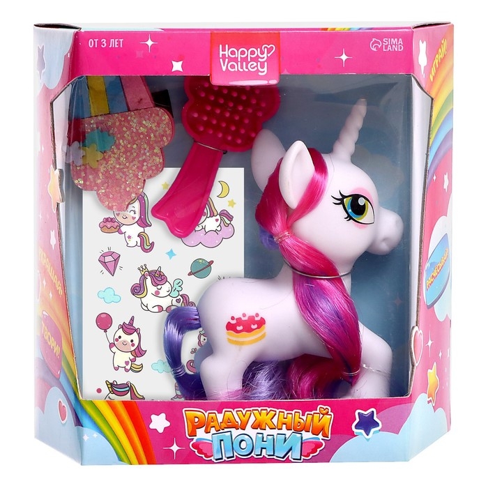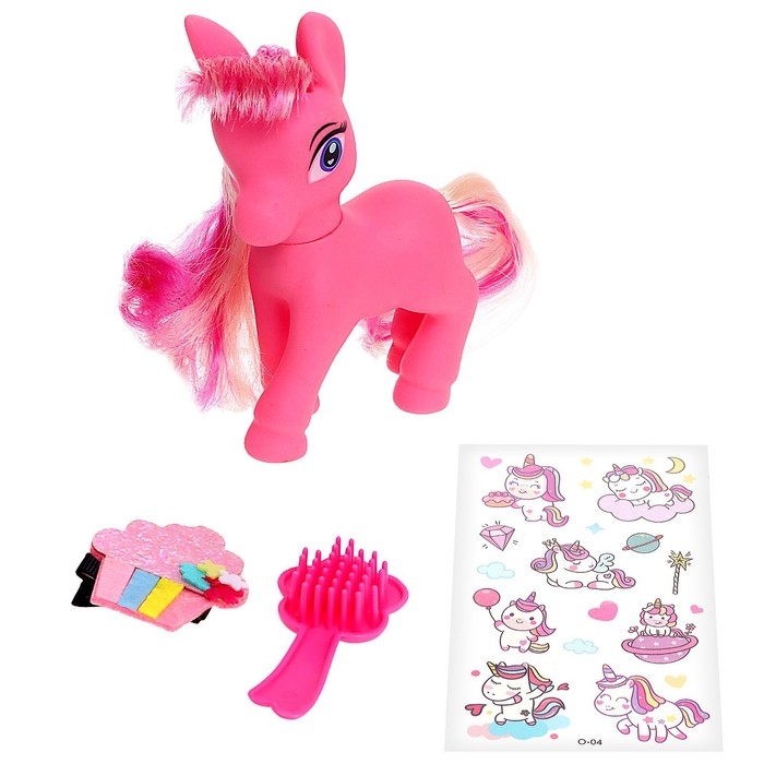 Что может быть лучше пони для маленькой принцессы? Только набор с пони, расчёской, заколкой и наклейками! С ним малышка сможет сделать креативные причёски для лошадки и украсить любимые предметы красочными наклейками. Набор станет отличным подарком на любой праздник!