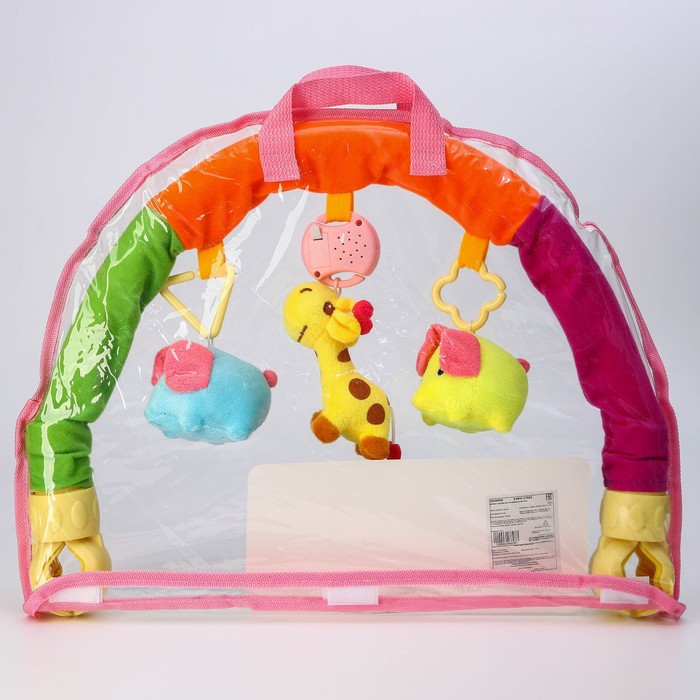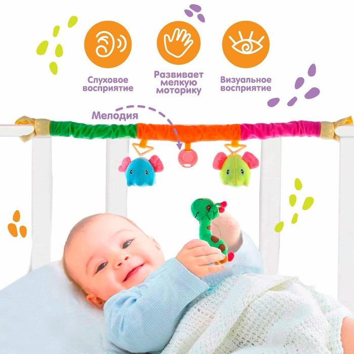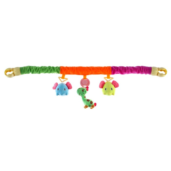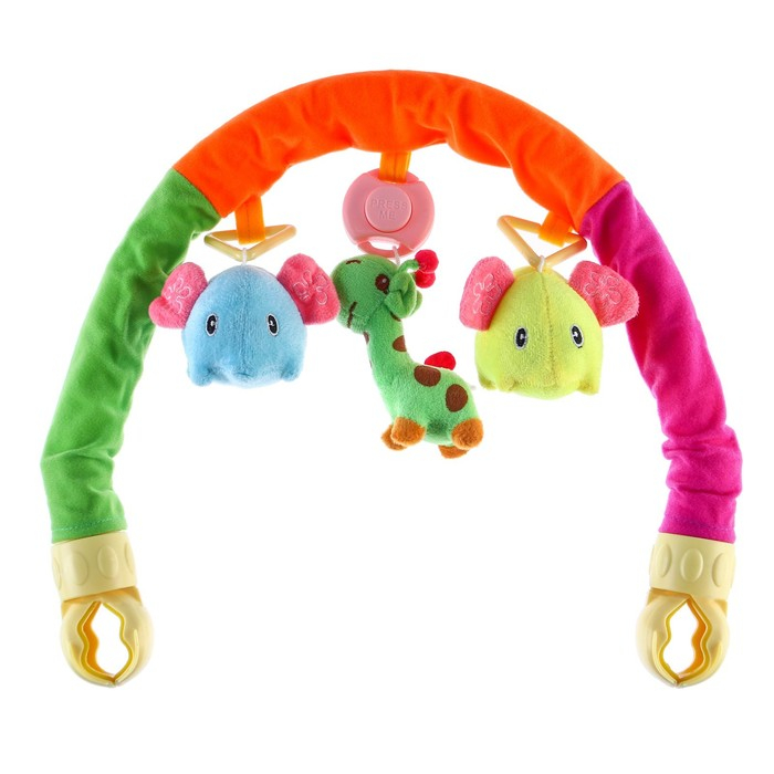 Дуга игровая музыкальная на кроватку, коляску «Слоники», 42-68 см, музыкальная, погремушки, 3 игрушки, цвета МИКС, Крошка Я