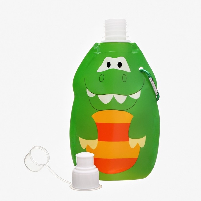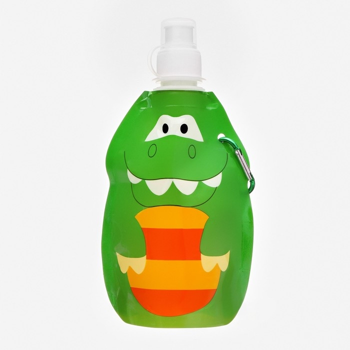 Фляжка для воды, 280 мл, "Крокодил", на карабине, 22 х 12 см
