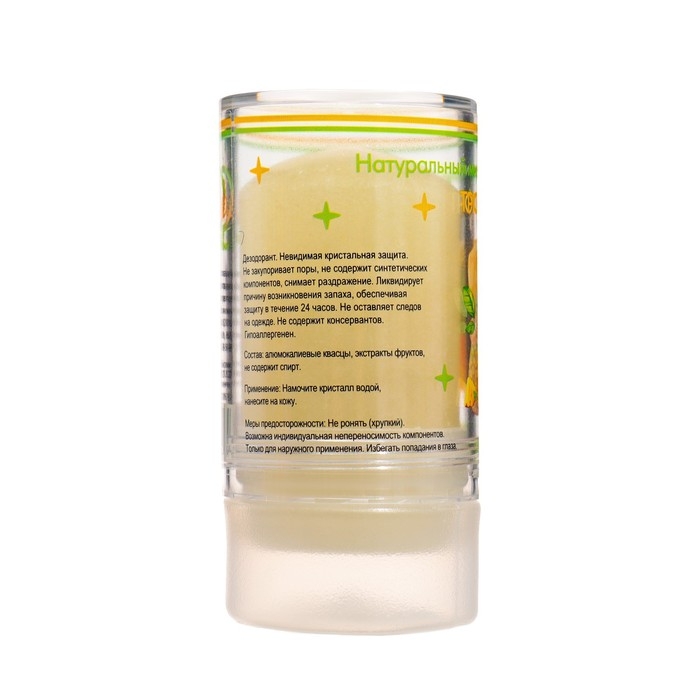 Представляет собой натуральный кристалл алунит, обладающий высокой антибактериальной активностью. Предотвращает появление пота и неприятного запаха в течение всего дня. Заживляет ранки и увлажняет!