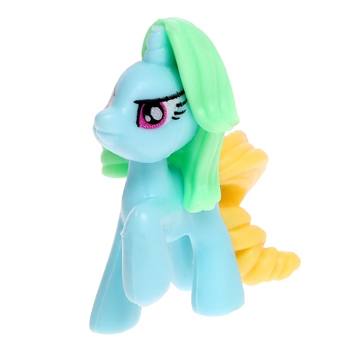 - Высота пони — 4,5 см. Игрушка очень компактная, поэтому её удобно захватить с собой на прогулку, в гости и даже в путешествие!