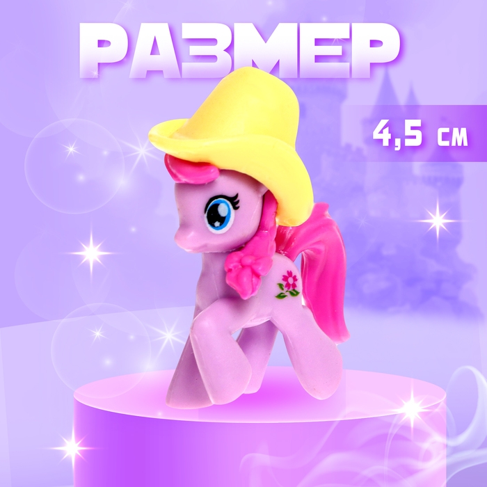 - Высота пони — 4,5 см. Игрушка очень компактная, поэтому её удобно захватить с собой на прогулку, в гости и даже в путешествие!