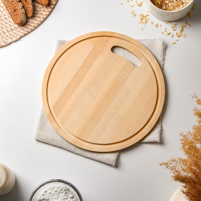 Доска разделочная круглая с желобом, d=28x0,8, массив березы