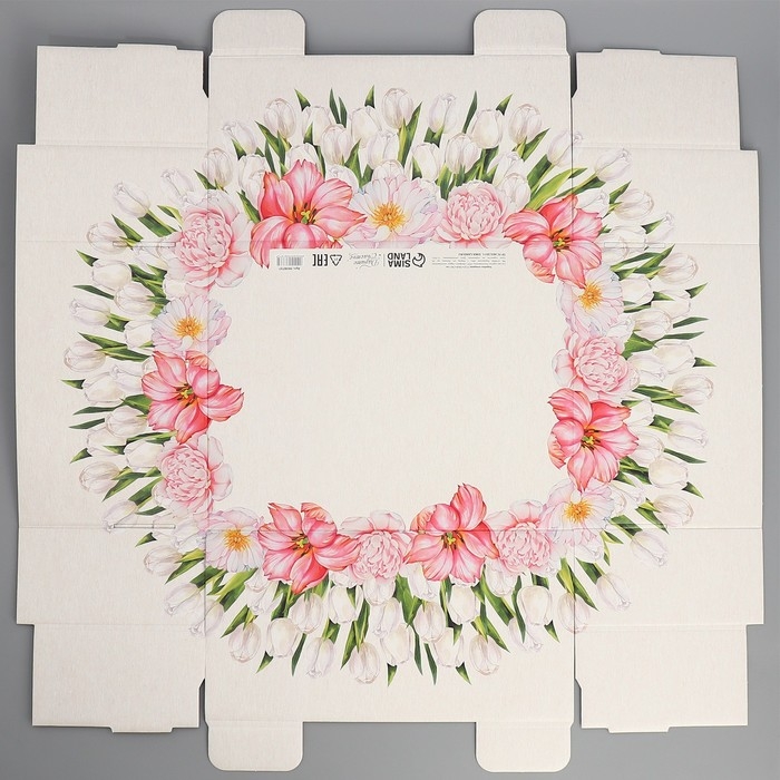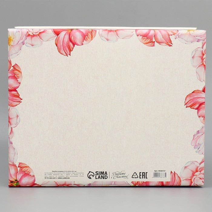 Коробка сборная крышка-дно с окном, "Акварельные цветы", 14,5 х 14,5 х 6 см