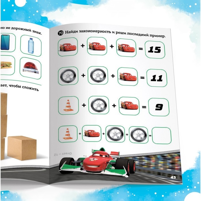 Со сборником задач «Решай, считай, играй» познавать окружающий мир будет легко и интересно. Малыш подружится с Молнией Маккуином, Мэтром и другими героями любимого мультфильма.