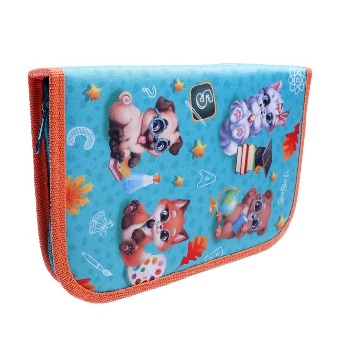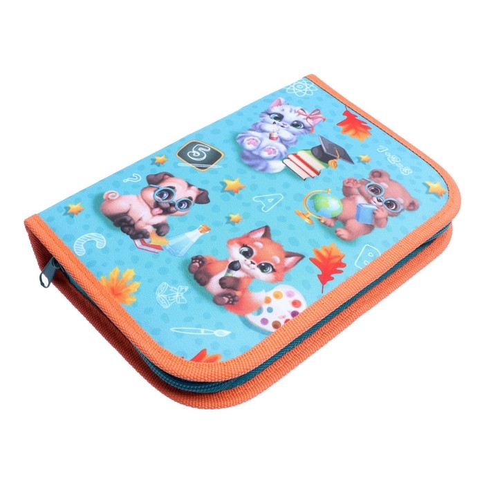 Пенал 3 секции, вкладка внутри, 140 х 210 х 40 мм, тканевый, Calligrata TOP Block "Зверята"