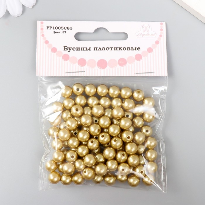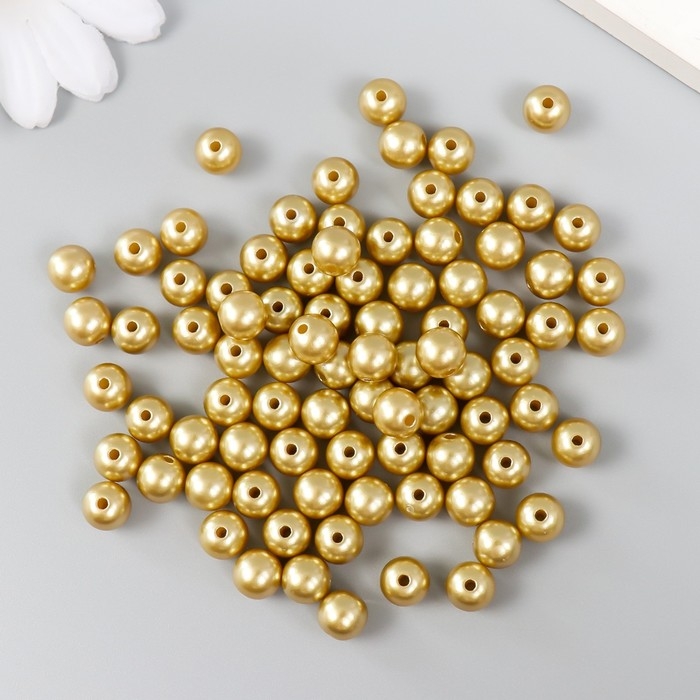 Набор бусин "Рукоделие" пластик, диаметр 8 мм, 25 гр, золотой