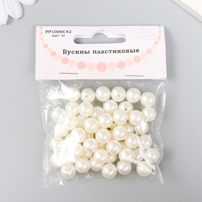 Набор бусин "Рукоделие" пластик, диаметр 10 мм, 25 гр, молочный