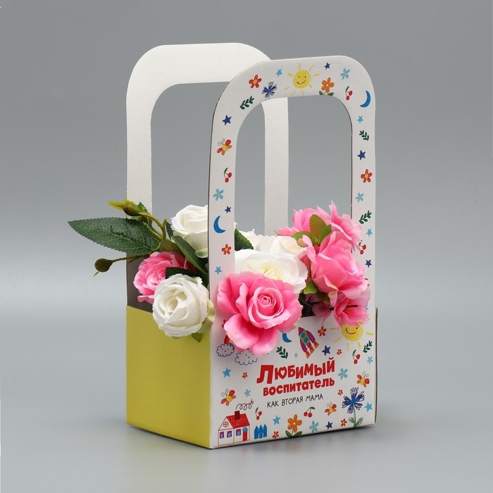 Коробка-переноска для цветов «Любимому воспитателю», 17 × 12 × 32 см