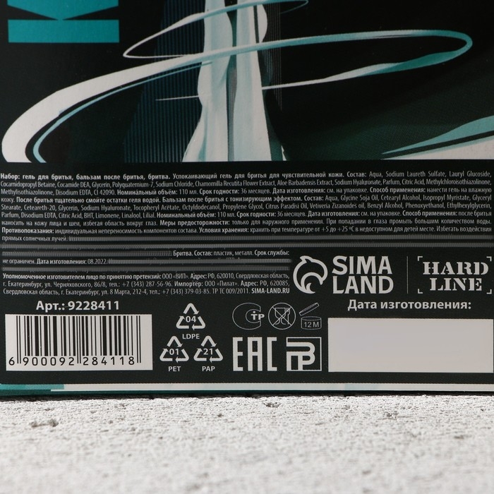 Подарочный набор косметики «Настоящий космонавт», гель для бритья 110 мл и бальзам после бритья 110 мл, HARD LINE