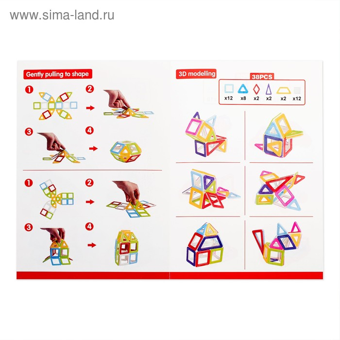 С волшебными магнитами, выполненными в виде геометрических форм, простору для воображения не будет предела. Ребёнок соединит детали и из квадратов и треугольников получит машину, робота, подъёмный кран и многое другое. Иллюстрированная инструкция подскажет идеи для сборки и продемонстрирует принципы конструирования, с ней создание фигурок станет проще и увлекательнее.