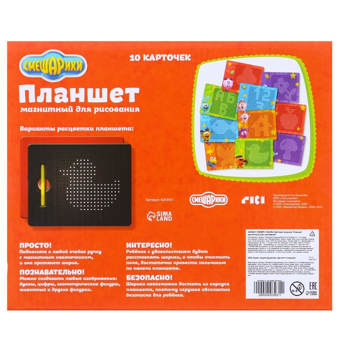 Планшет магнитный для рисования «Магнитное рисование», СМЕШАРИКИ, 380 отверстий