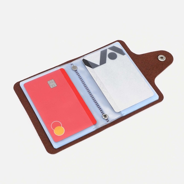 Визитница на кнопке, 12 карт, цвет коричневый