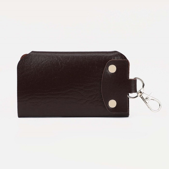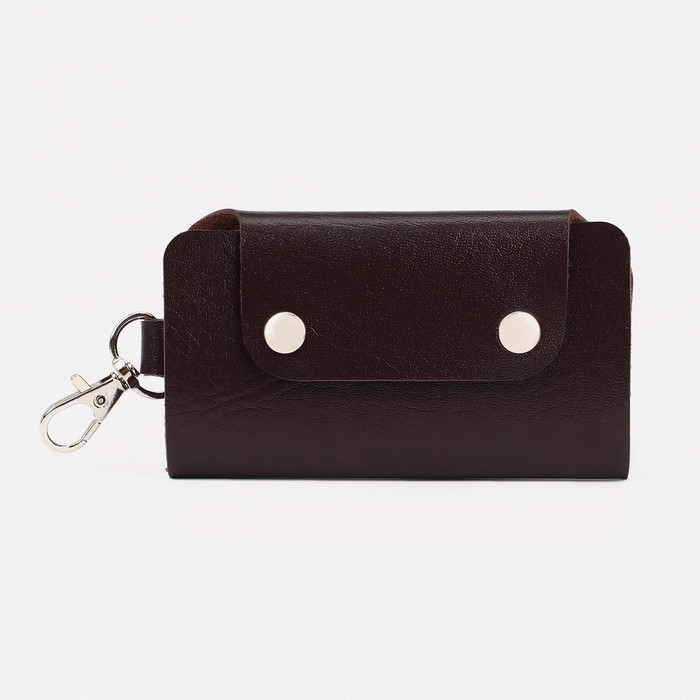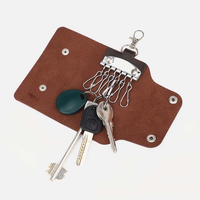 Ключница на кнопках, длина 11 см, 7 карабинов, цвет коричневый