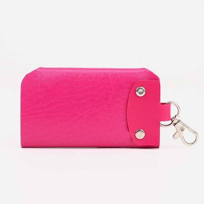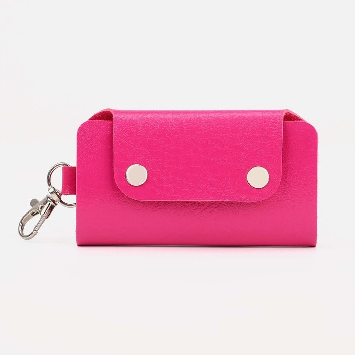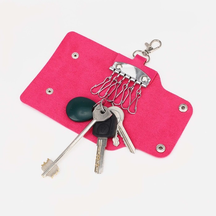 Ключница на кнопках, длина 11 см, 7 карабинов, цвет фуксия