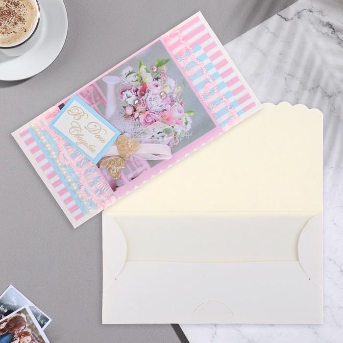 Конверт для денег "В День Свадьбы!" дек. элемент, цветы, лейка, 9х17 см