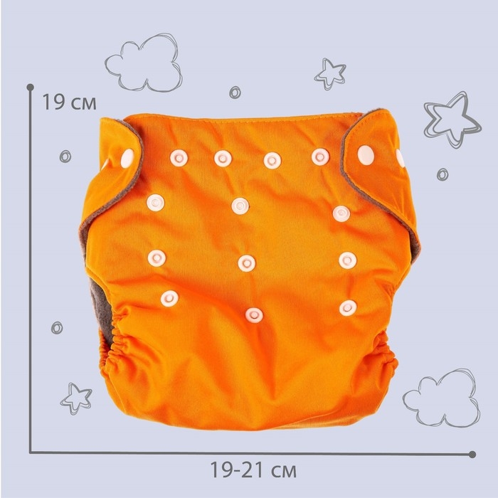 Многоразовый подгузник, 3-15 кг, угольно-бамбуковая ткань, цвет оранжевый, Крошка Я