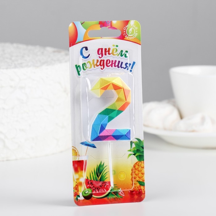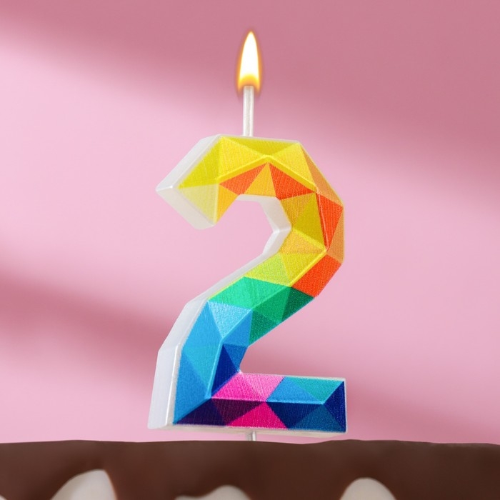 Свеча в торт на шпажке "Разноцветные грани", цифра 2, 5,3 см