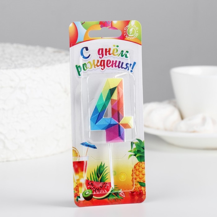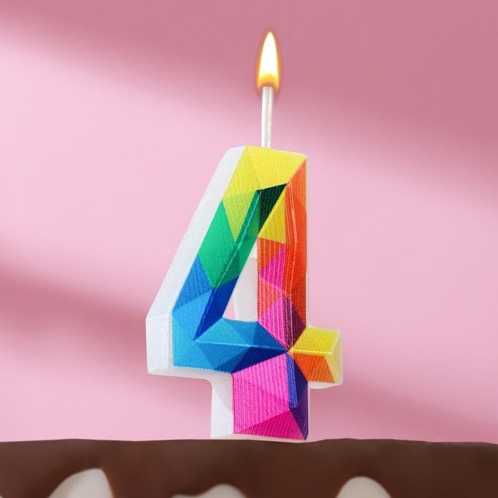 Свеча в торт на шпажке "Разноцветные грани", цифра 4, 5,3 см