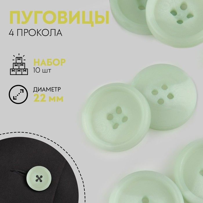 Набор пуговиц, 4 прокола, d = 22 мм, 10 шт, цвет оливковый