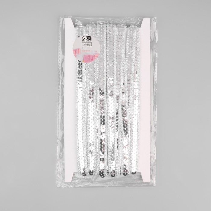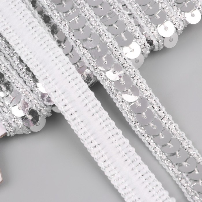 Тесьма декоративная с пайетками, 12 мм, 9 ± 0,5 м, цвет серебряный
