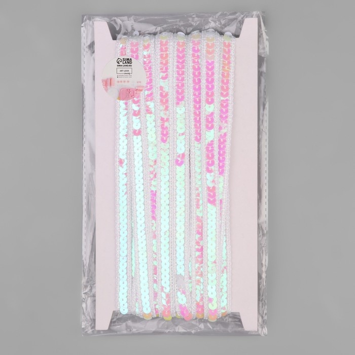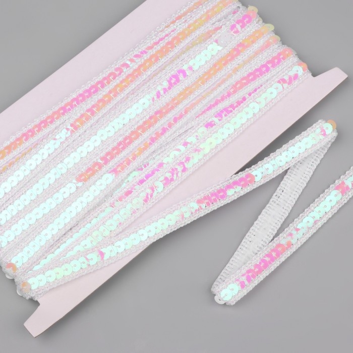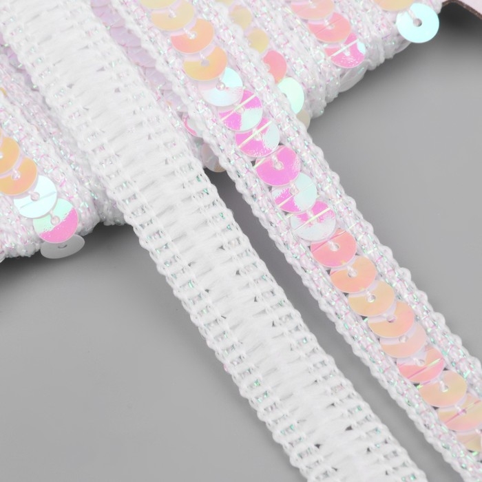 Тесьма декоративная с пайетками, 12 мм, 9 ± 0,5 м, цвет перламутровый