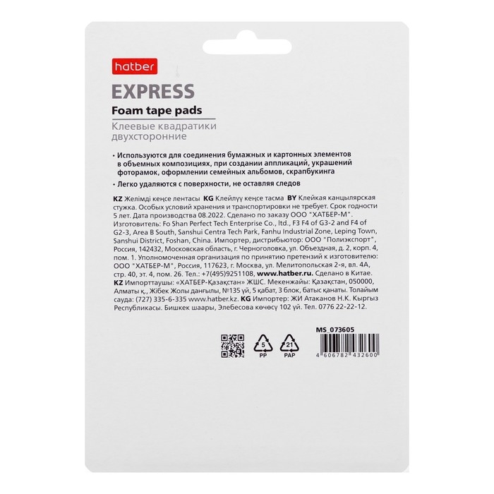 Клеящие подушечки Hatber 48 штук 3 листа 25 х 25мм двусторонние